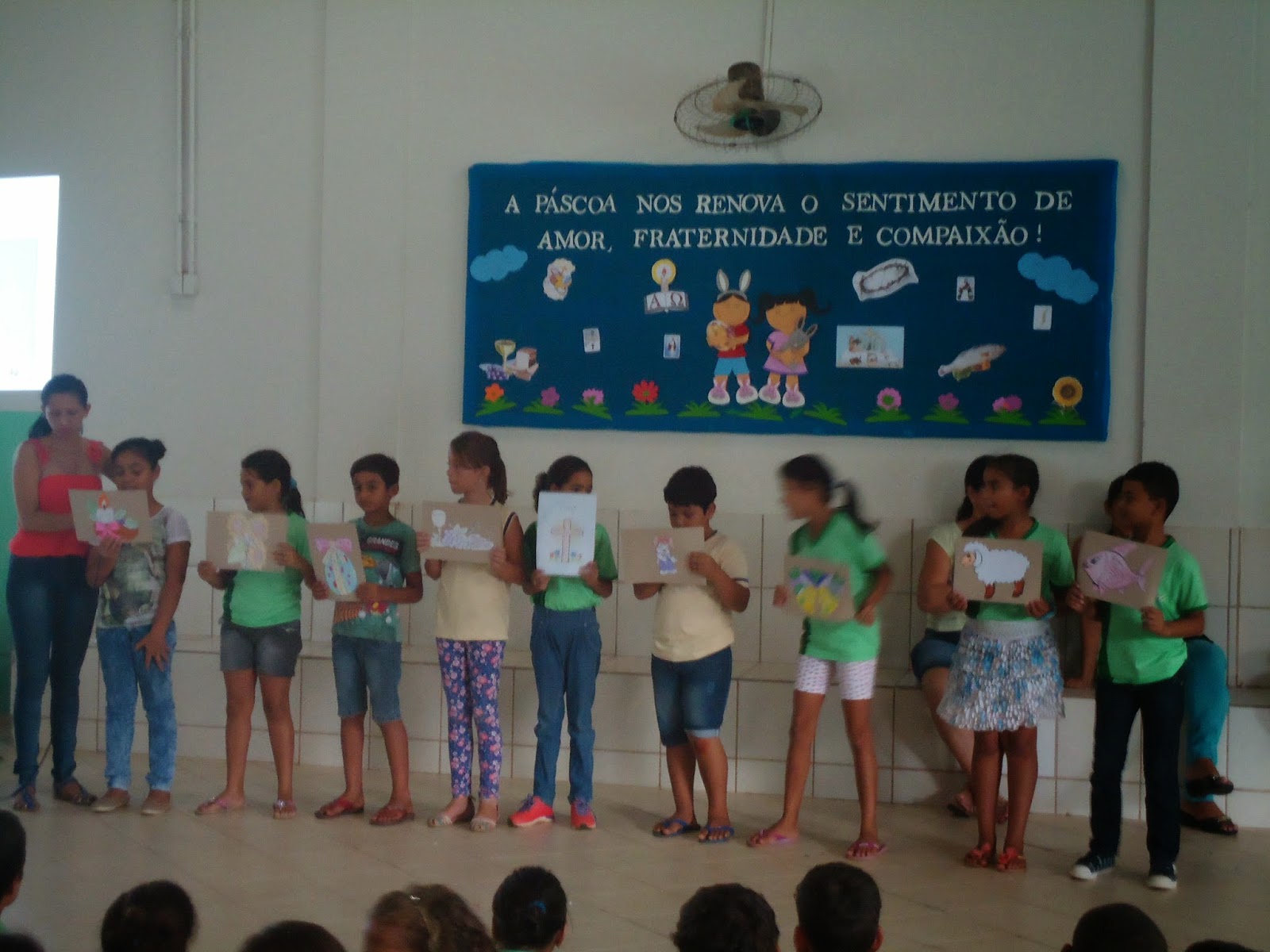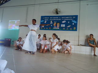As apresentações falavam do verdadeiro significado da Páscoa, que vai além do coelhinho e do ovo de chocolate...que também foram lembrados. Tivemos dança, coral, Jogral, teatro e muito mais. Também a entrega dos chocolates às crianças, que ficaram com o sorriso no rosto de alegria e satisfação em receber a lembrança.