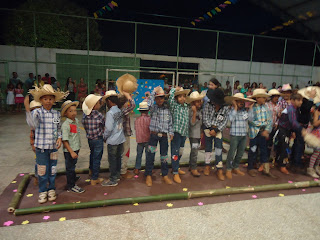 as quadrilhas e a dança da fita com os alunos do 1° ano e 5°ano