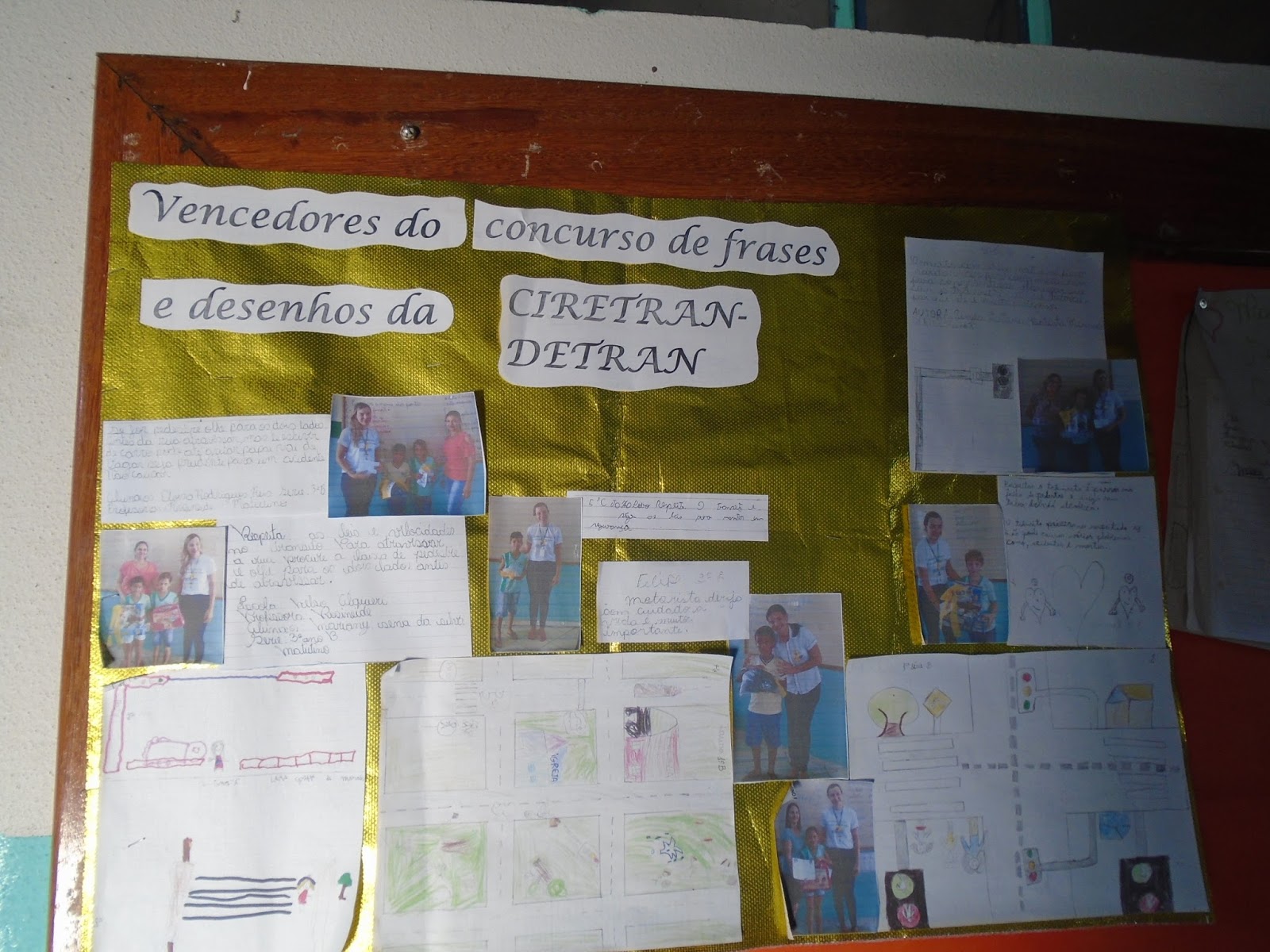 Parabéns aos ganhadores do concurso de frases e desenhos da CIRETRAN-DETRAN. Parabenizamos também toda a equipe escolar e equipe CIRETRAN-DETRAN que se empenharam para a realização do mesmo.