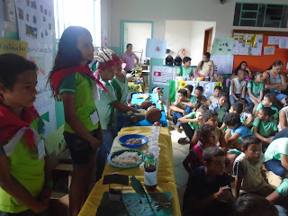 A professora Cristina juntamente com os alunos do 4º ano A e 4º ano B realizam a Feira Regional.